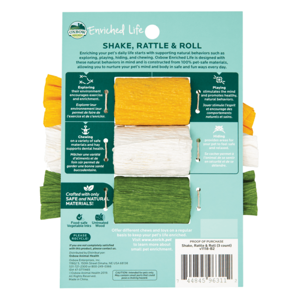 Enrichir le quotidien de votre animal commence par encourager ses comportements naturels comme explorer, jouer, se cacher et mâcher. Oxbow Enriched Life est conçu pour ces comportements naturels et est fabriqué à partir de matériaux 100 % sans danger pour les animaux, vous permettant de prendre soin de son esprit et de son corps de manière sûre et amusante au quotidien.